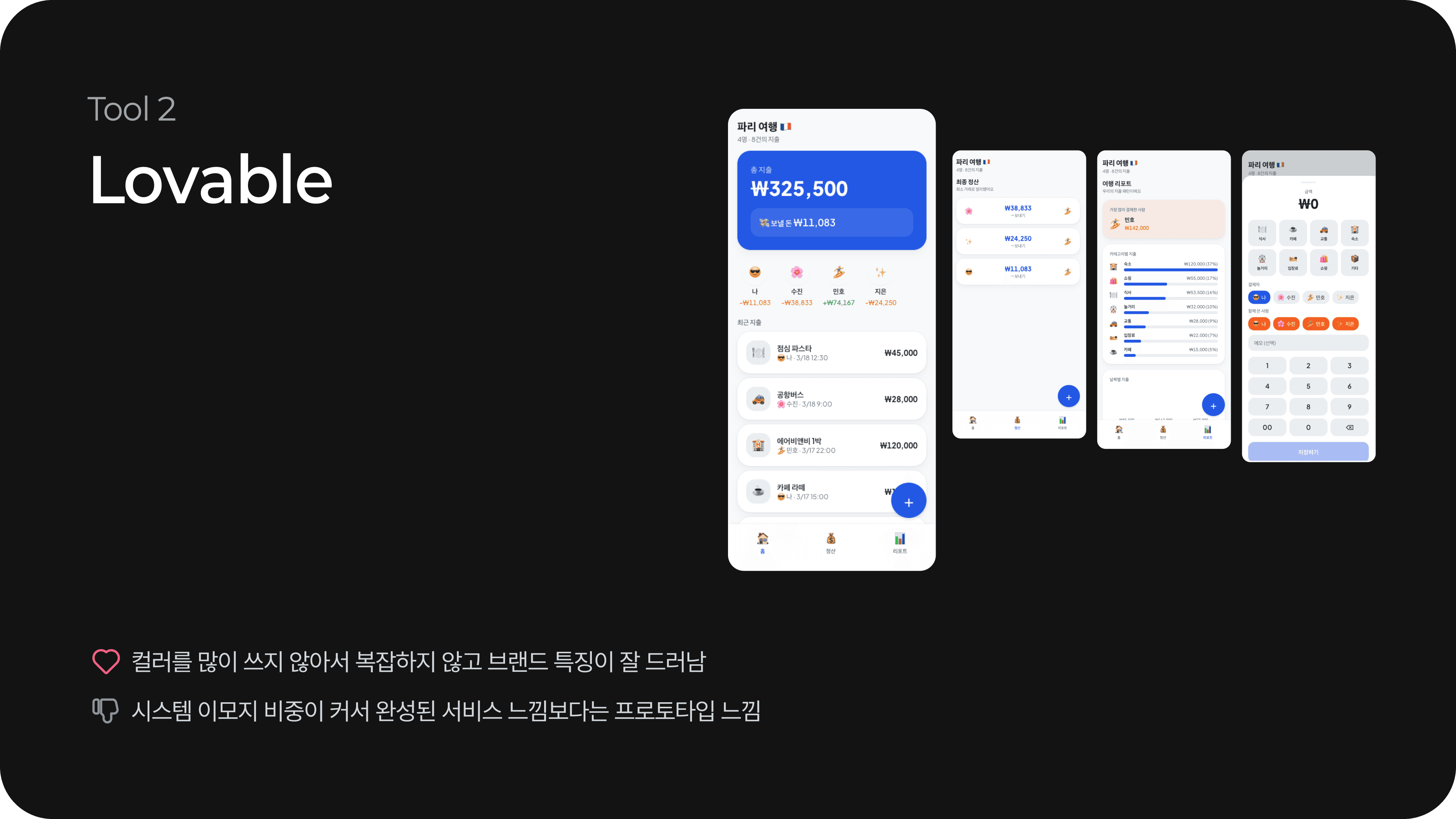 하지만 시스템 이모지 비중이 커서 완성된 서비스 느낌보다는 프로토타입 느낌에 가까웠어요.