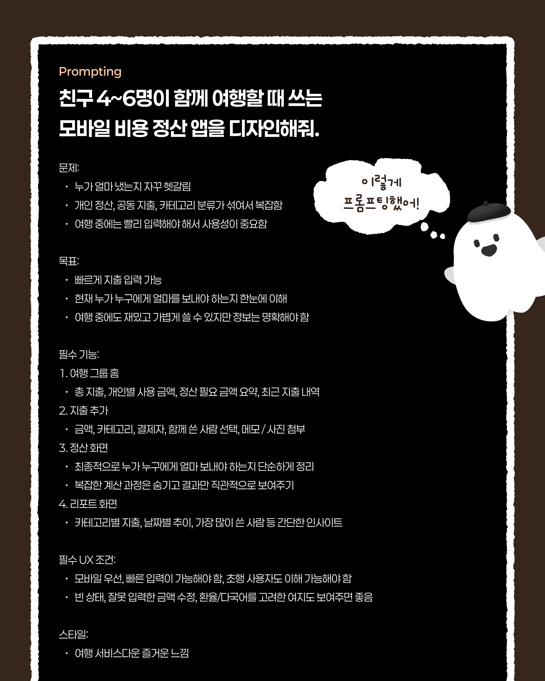 간단한 서비스 기획이나 화면 아이디어를 정리할 때, 프롬프트 하나만으로 어느 정도 결과물이 나오는 시대가 되었죠.