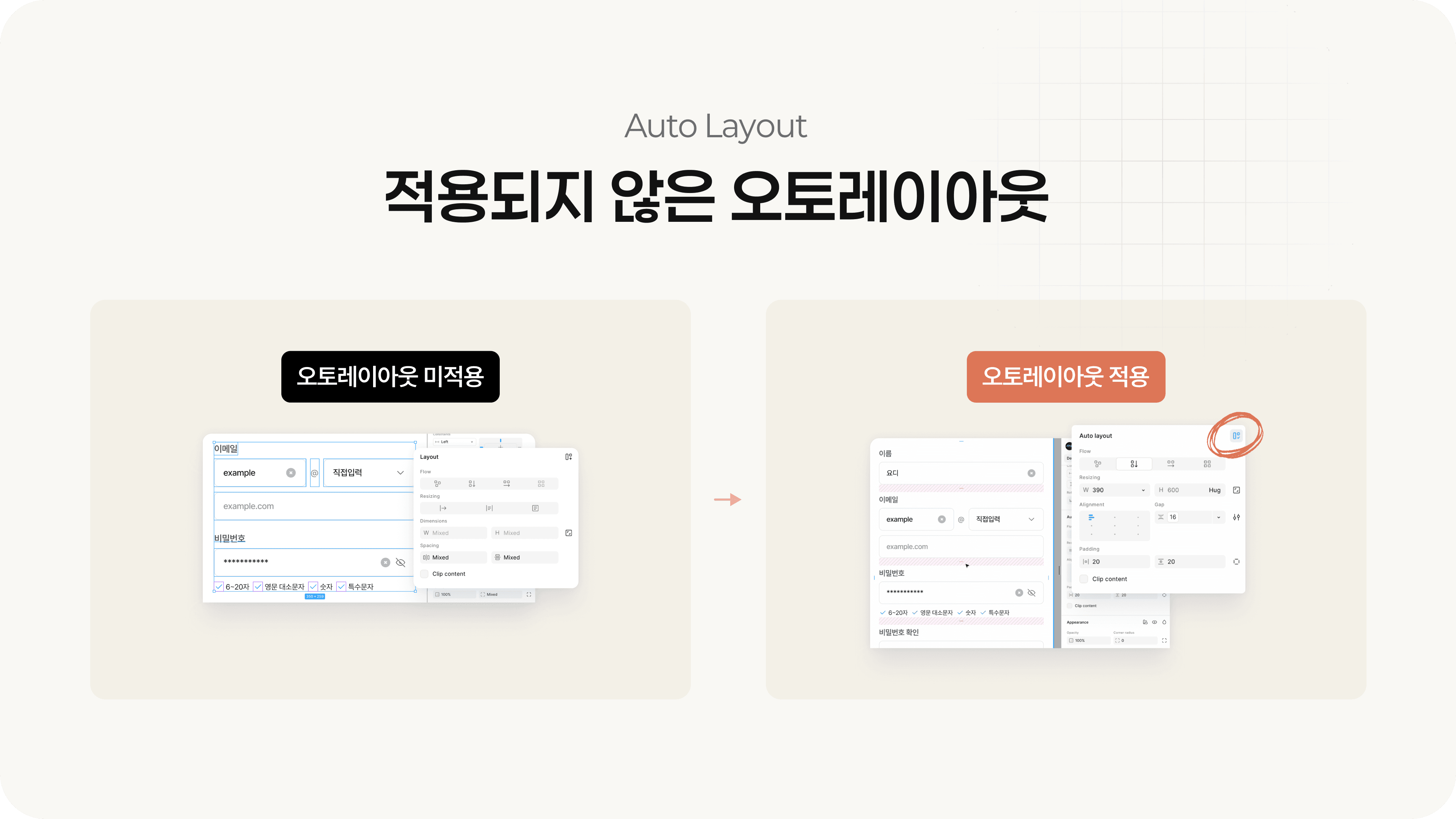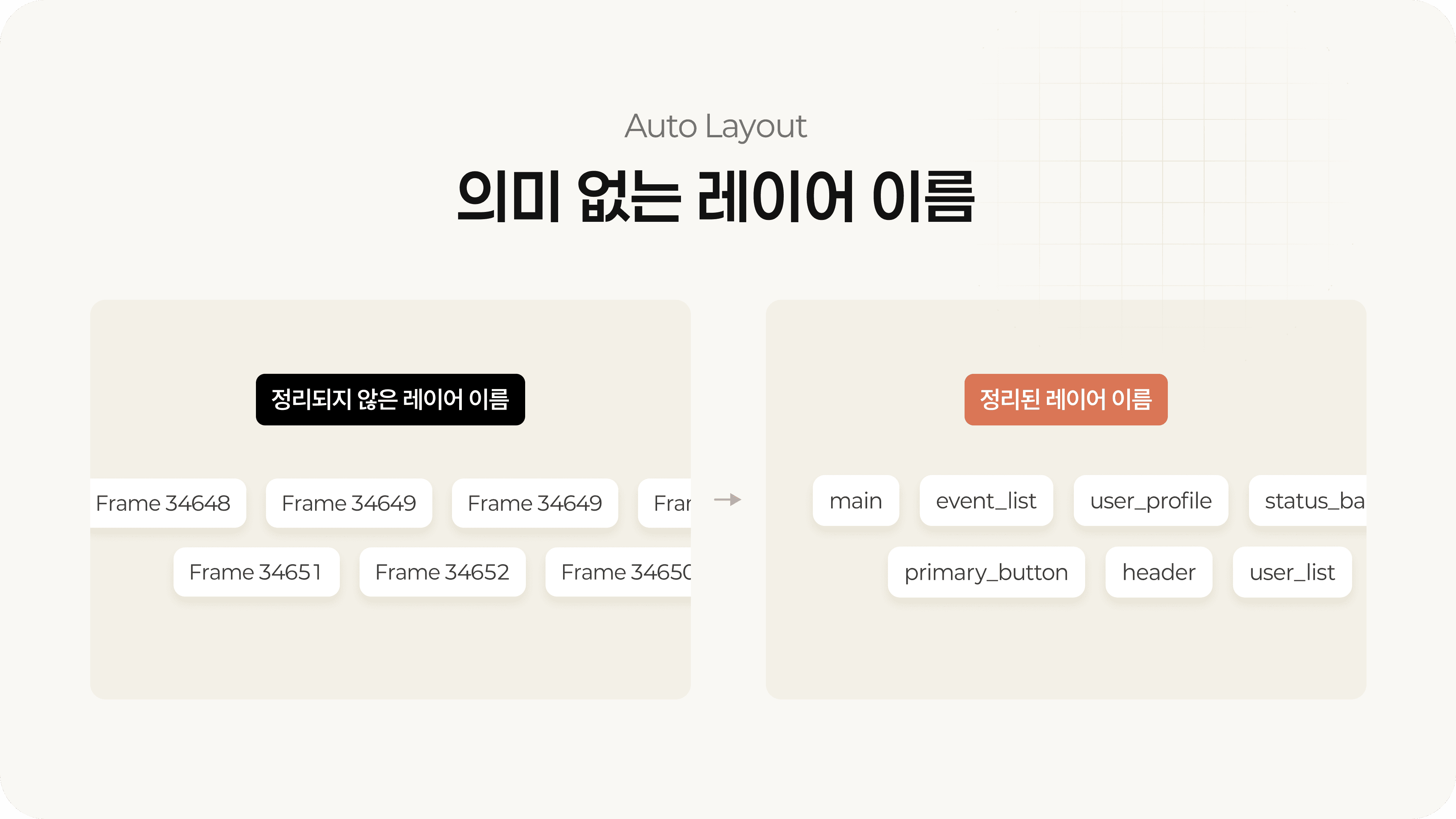 오토레이아웃이 없으면 내부 요소가 절대 좌표로 인식되어 AI가 반응형이나 정렬 기준을 잘못 해석할 수 있어요.
