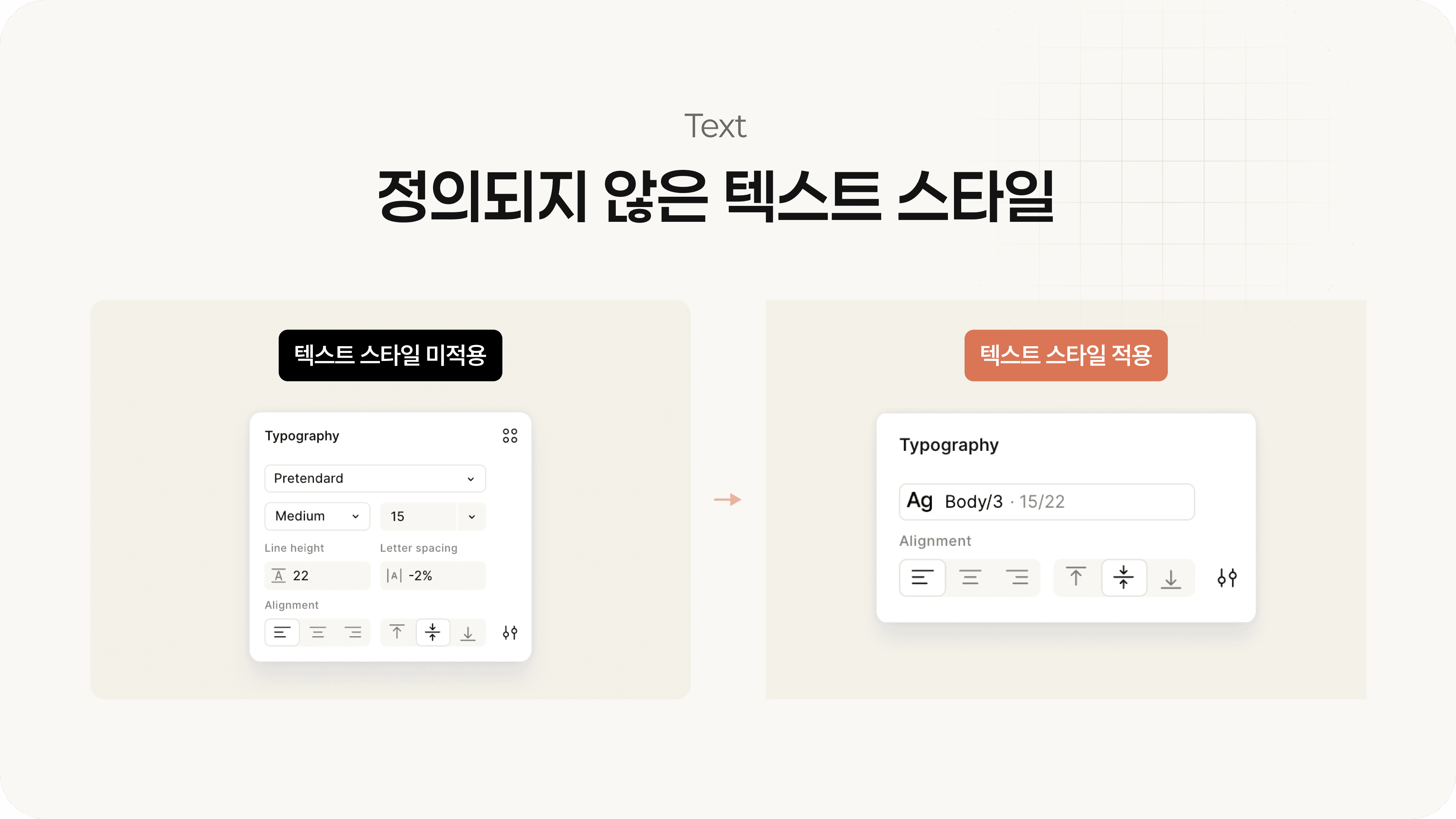 텍스트 스타일이 연결되어 있지 않으면 모두 제각각으로 인식헤요.