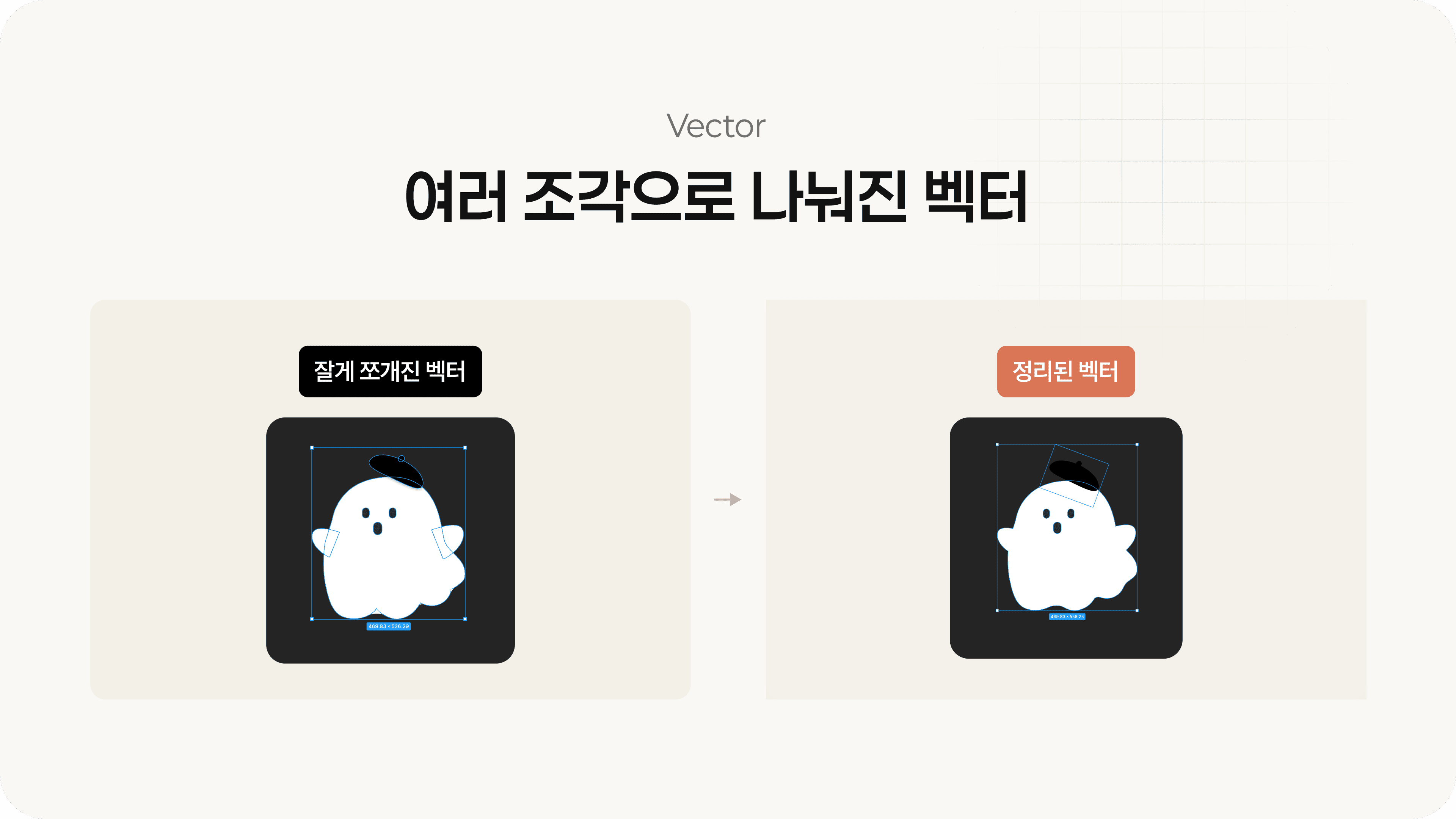 아이콘이나 그래픽이 너무 많은 벡터 조각으로 나뉘어 있으면 AI는 이를 하나의 아이콘이 아니라 여러 도형 조합으로 읽어요.