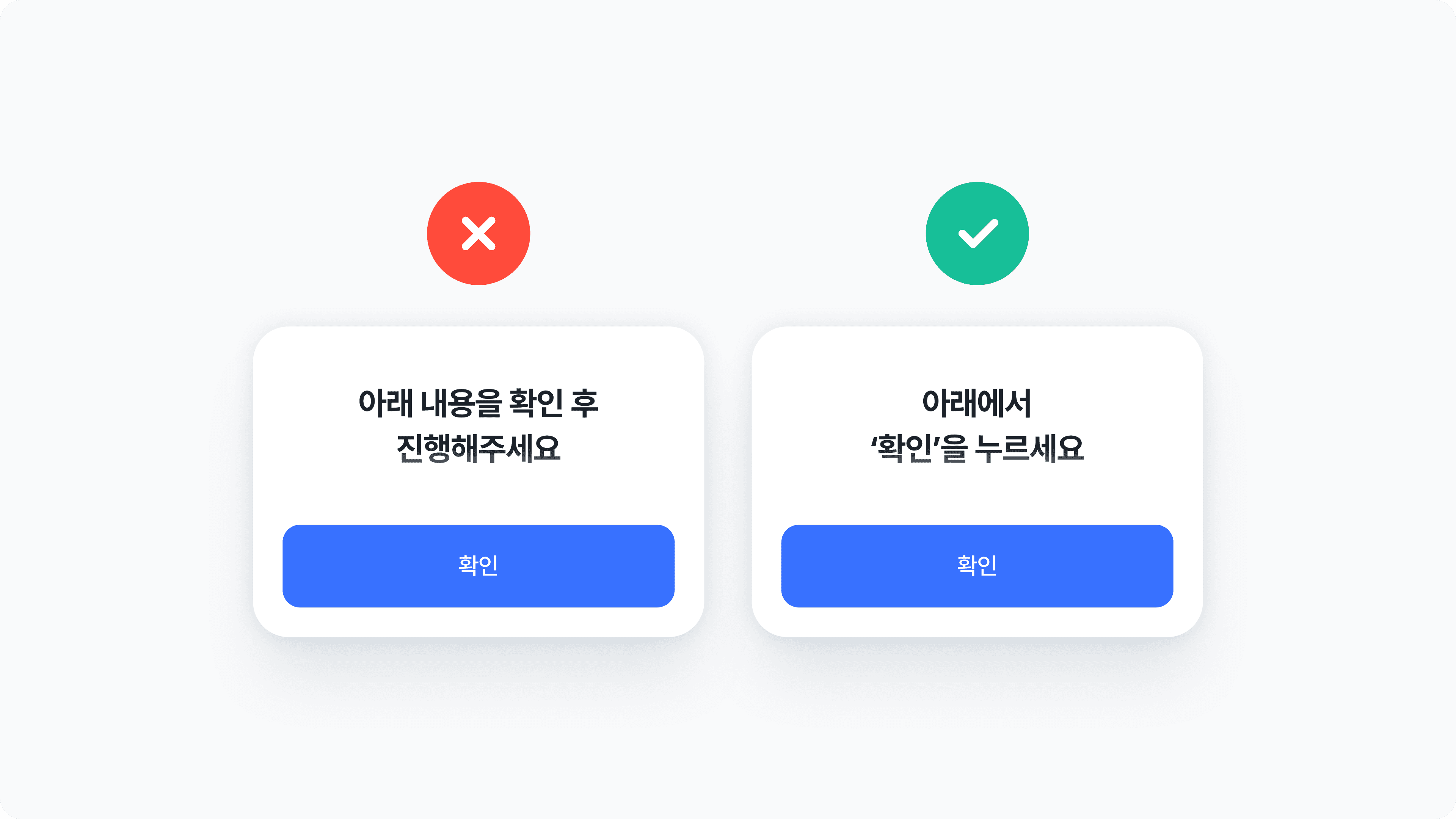 ❌ “아래 내용을 확인 후 진행해주세요.”