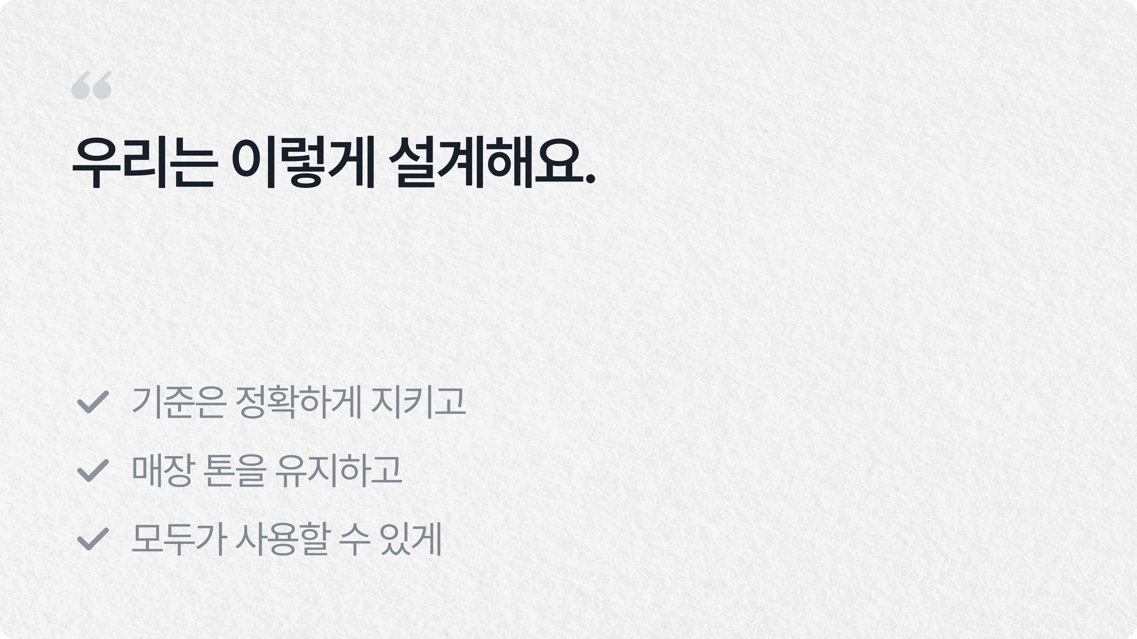 그래서 더 중요한 건 단순히 기능을 붙이는 것이 아니라, 실제로 모든 사용자가 매끄럽게 사용할 수 있는 흐름으로 설계하는 것이에요. 재작업 리스크를 줄이고 운영 중 불편이 생기지 않도록 UX 흐름까지 함께 지키는 것, 이것이 배리어프리 키오스크에서 가장 중요한 포인트예요.