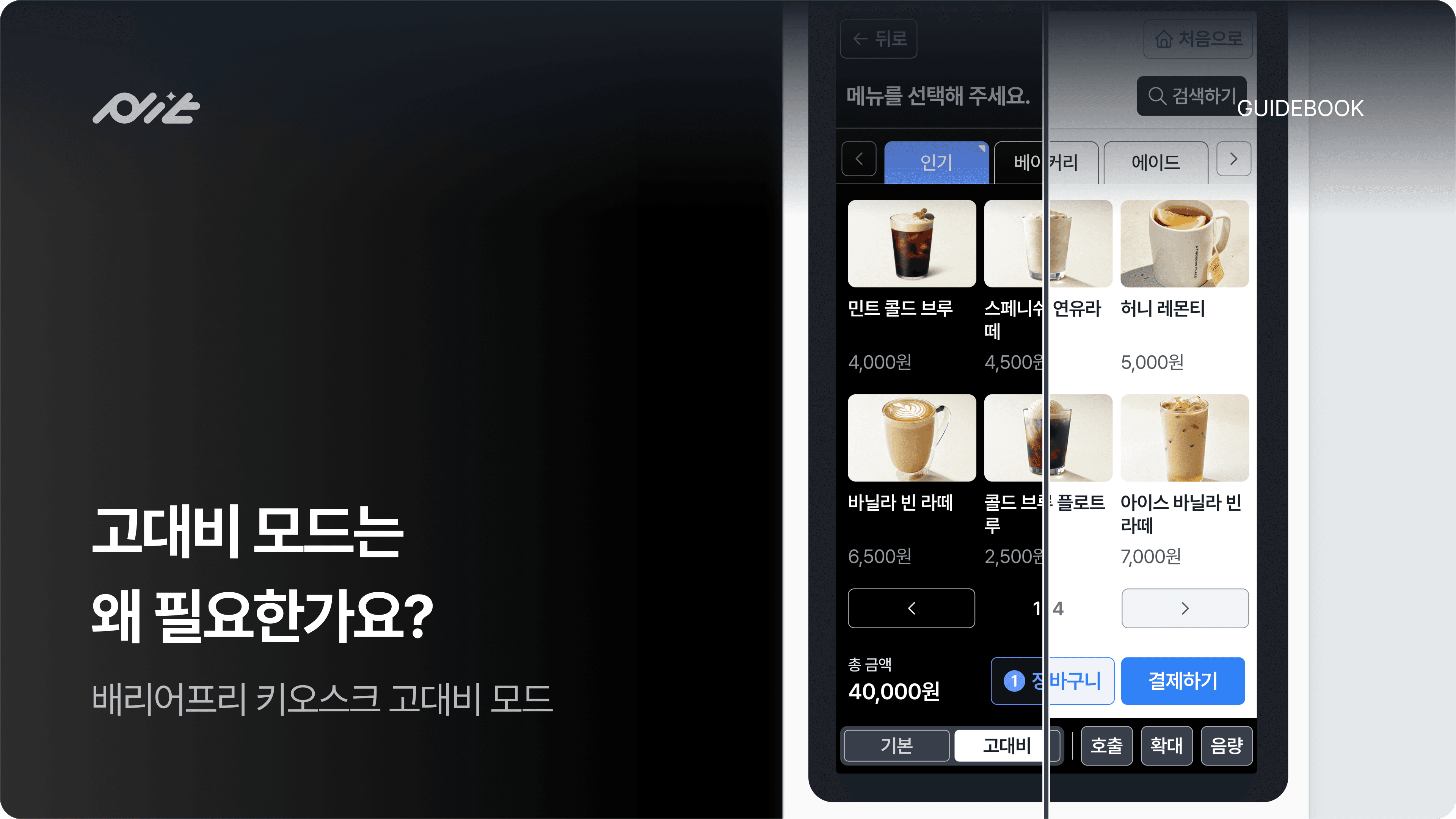 결국 고대비 모드는 사용자에게 정보를 정확하게 전달하는 장치이고, 키오스크 경험을 더 안정적으로 만드는 중요한 기본 중 하나예요.