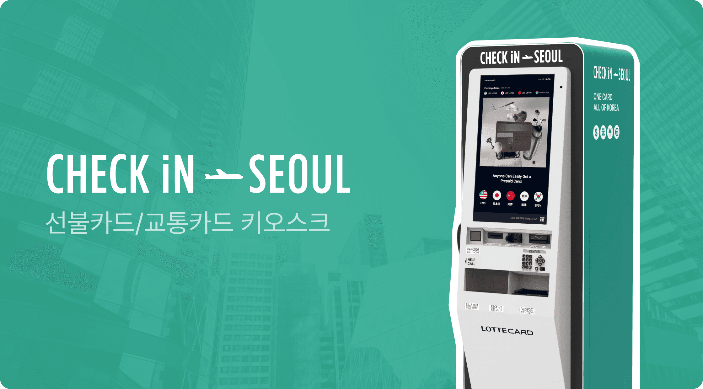 외국인들을 위한 선불카드/교통카드 발급 및 충전 키오스크