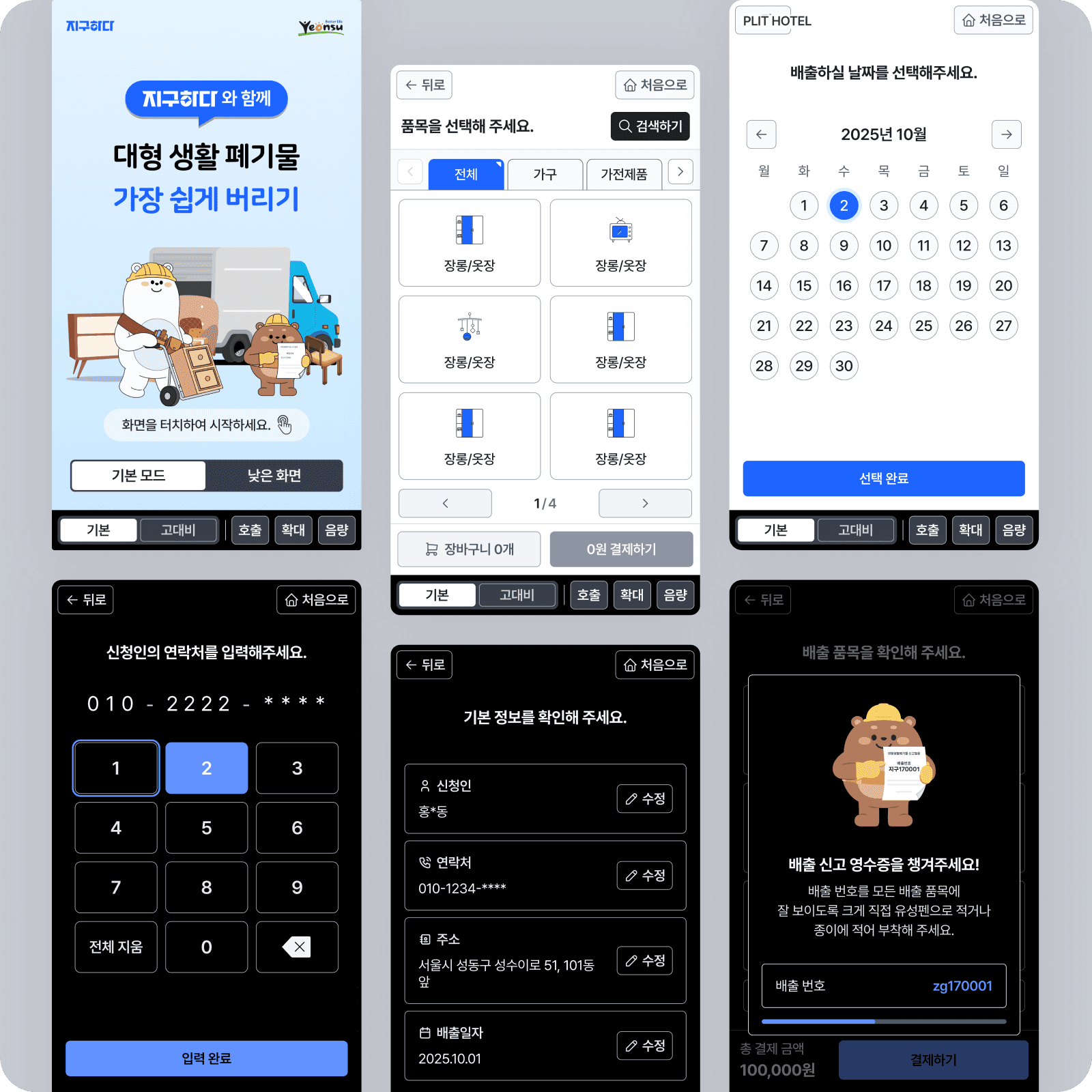 대형 생활 폐기물을 편리하게 신고할 수 있는 키오스크를 배리어프리 키오스크로 디자인했습니다.